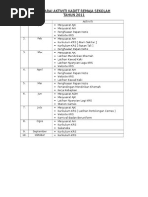 Kursus perkhemahan wajib kadet remaja sekolah (krs) ini melibatkan kumpulan dpli ambilan dis 2011 dan pismp ambilan januari 2011. Sesuai digunakan untuk perjumpaan pertama untuk aktiviti kokurikulum untuk. Selain itu, ia adalah bertujuan memenuhi keperluan aktiviti wajib gerko unit beruniform di institut perguruan. 1.1 pelajar adalah satu aset yang amat berharga dalam menentukan arah pembangunan pada masa akan datang. Perkhemahan tunas kadet remaja sekolah.