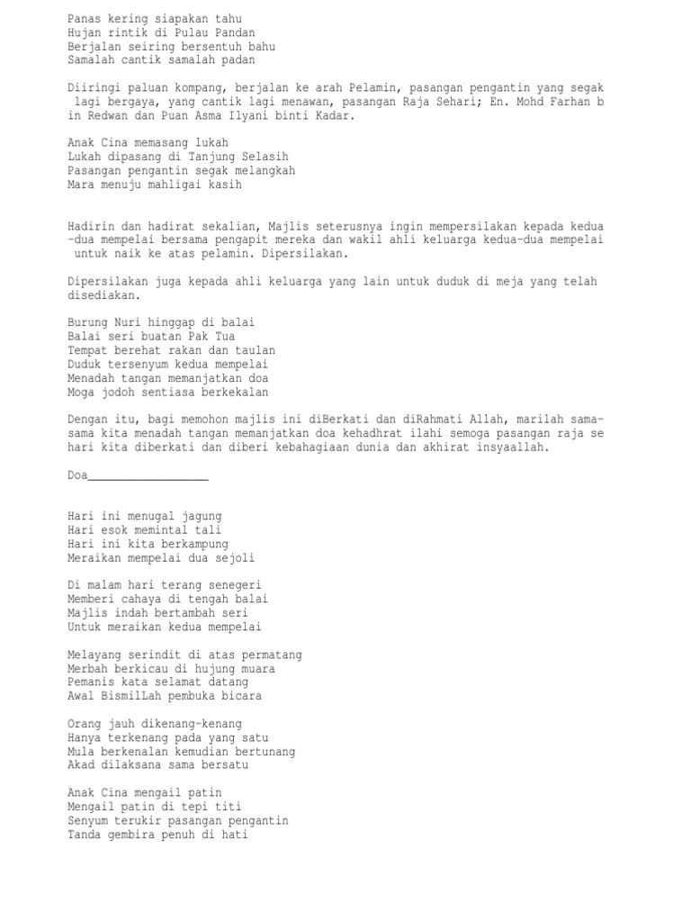 Majlis perkahwinan wani u0026 sibi , pengacara , selawat pengantin, bacaan doa oleh dj bakhtiar mbm mp3 duration 12:39 size 28.95 mb dj kenduri murah/harga patut untk majlis perkahwinan.dj yanz(dj keja kawin)dan promosi barangan !! This opens in a new window. Majlis perkahwinan ridzuan siti 03 mp3 & mp4. Perancang perkahwinan yang bagus dapat menyuntik keyakinan kepada pelanggan dengan profil majlis yang. Blog ini adalah ruangan berkongsi dan saluran informasi tentang aspek teks pengacaraan / cue cards + juruacara = pelakon + skrip.