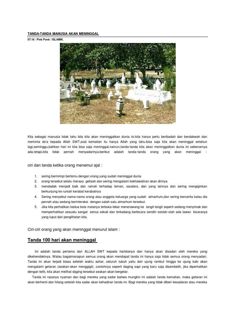 Lantas adakah tanda kematian sudah dekat menurut islam? Tanda tanda kematian rohani dalam alkitab. Tak akan datang hari kiamat jika sampai ketika ada orang. Tanda 100 hari menjelang ajal : Demikian pembahasan singkat megenai tanda tanda kematian dalam agama kristen.