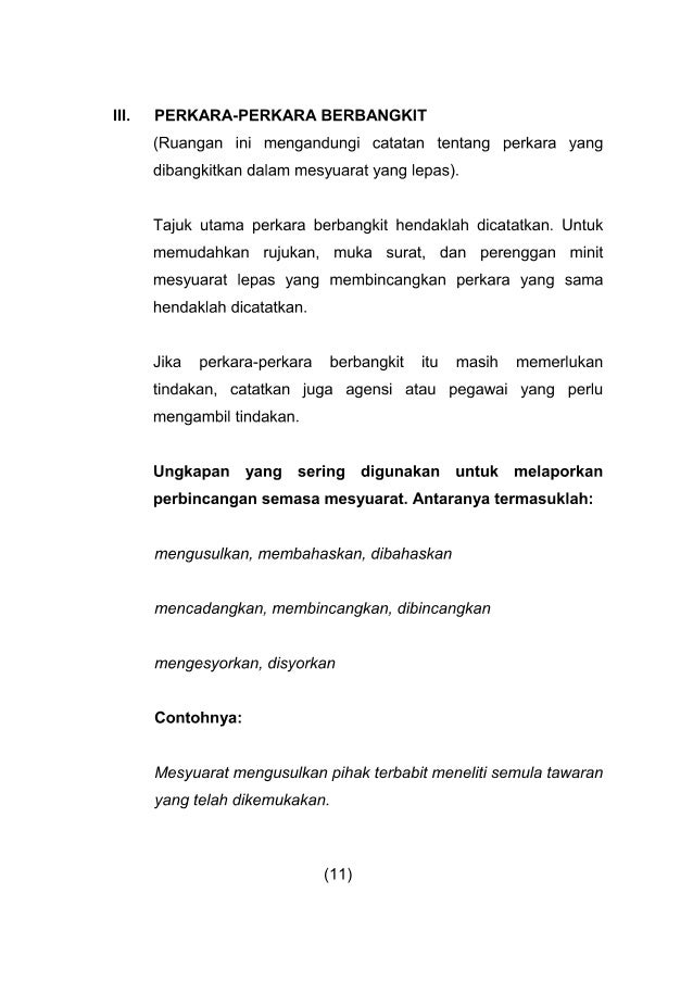 Format penulisan minit mesyuarat pengenalan 1.