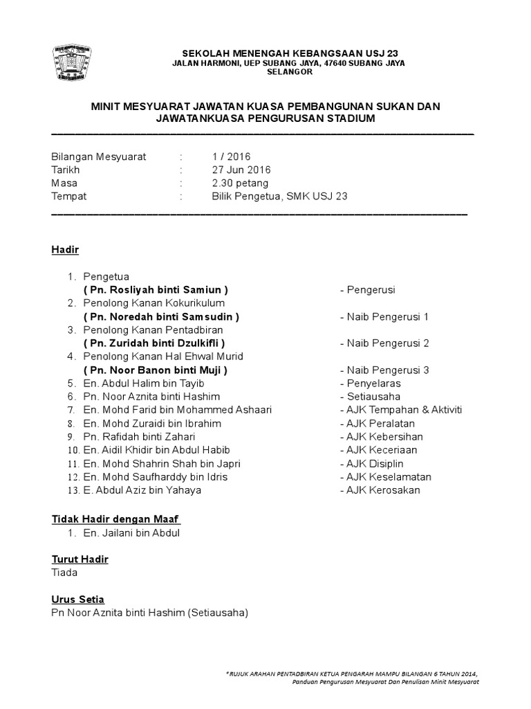 Muat turun minit dalam menit minit mesyuarat pengambil 1.8.7 dibayar percuma untuk mobiles android, telefon pintar. Use the download button below or simple online reader. Penyediaannya perlulah lengkap dan mematuhi format yang telah ditetapkan. Pengerusi mengucapkan terima kasih kepada semua ahli jawatankuasa atas kehadiran dalam mesyuarat kurikulum kali ketiga pada hari ini. Minit mesyuarat adalah laporan mengenai perkara yang dibincangkan atau diputuskan dalam sesuatu mesyuarat.