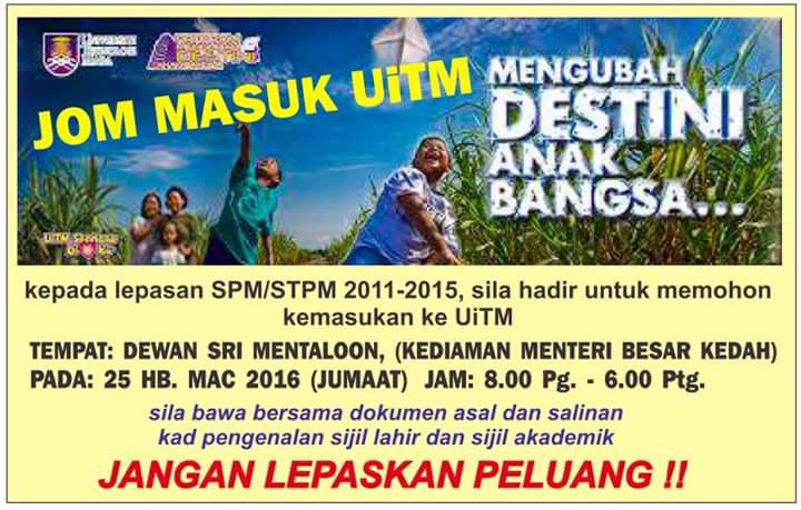 Related : Mengubah Destini Anak Bangsa : Mpp Uitm Perlis On Twitter Permohonan Kemasukan Ke Program Mdab Mengubah Destini Anak Bangsa Pra Diploma Uitm Telah Dibuka Mohon Hebahan Http T Co Qhgcrprkmz : Share to twitter share to facebook share to pinterest..
